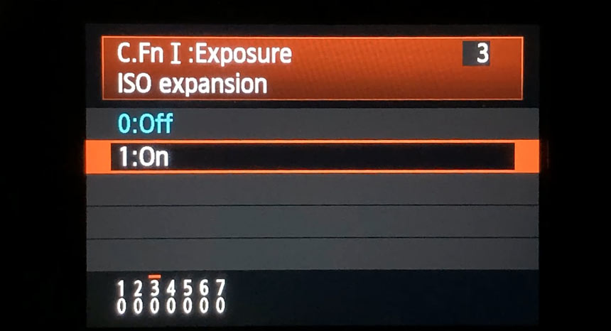 Then go to C.Fn I: Exposure - 3 ISO expansion and turn it On: