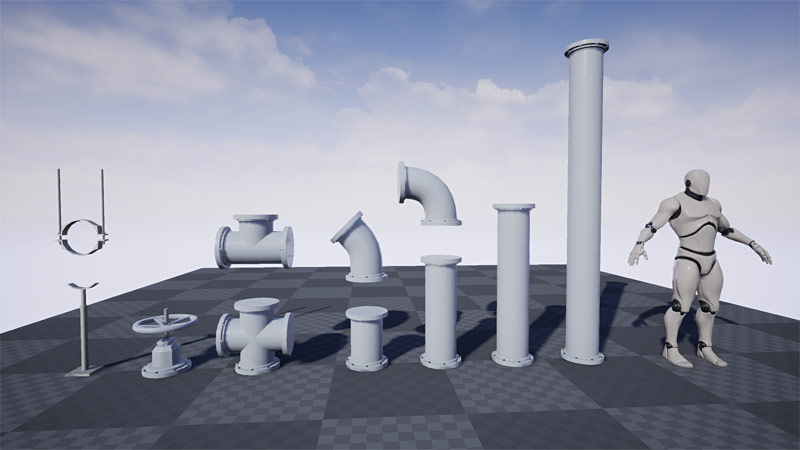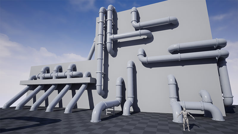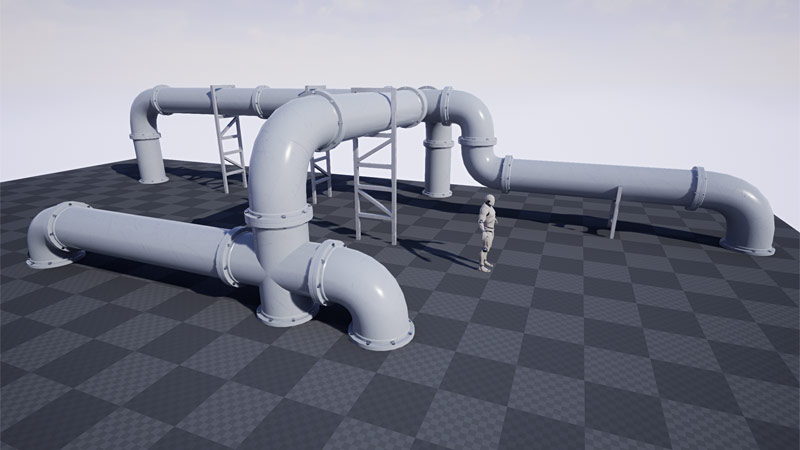 Modular Pipes were inspired by my obsession with "Mirror’s Edge". I loved the game’s style and its extensive use of pipes in the game. For long time I wanted to create something similar but custom. Eventually I did just that. "UE4 Modular Pipes Project" also became a tutorial course documenting the entire process of how to create these assets in Maya LT, how to texture them using Quixel Suite 2 and how to use them in UE4. You can get the complete tutorial course here.