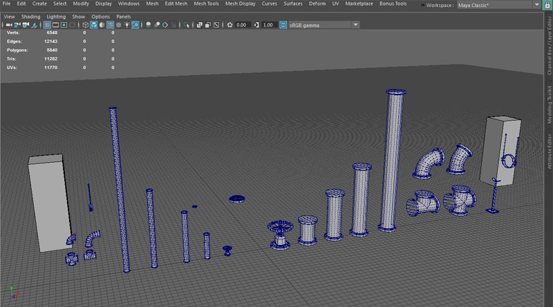 Static Meshes I used to create the environment with. All custom made using Maya LT and textured in Photoshop.